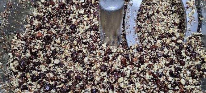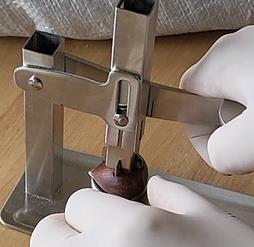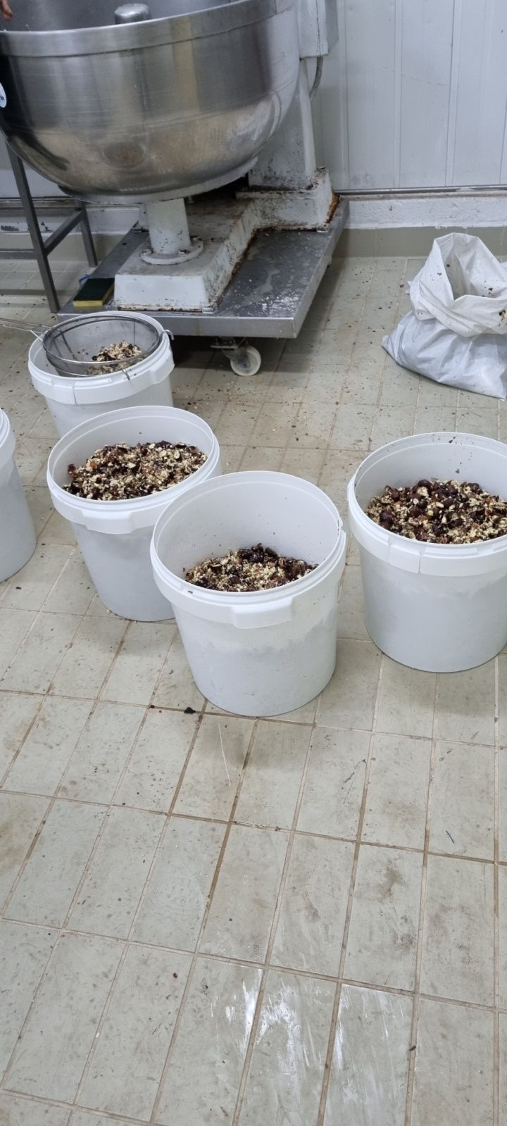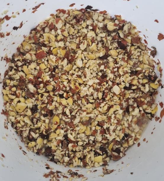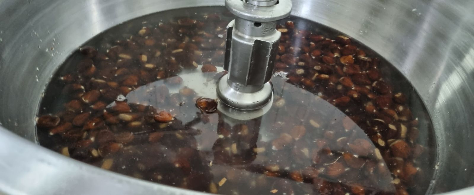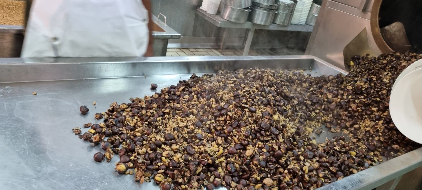 Α’ Φάση αποφλοίωσης – Ανάδευση των τεμαχισμένων κάστανων με στόχο το μηχανικό διαχωρισμό του φλοιού.