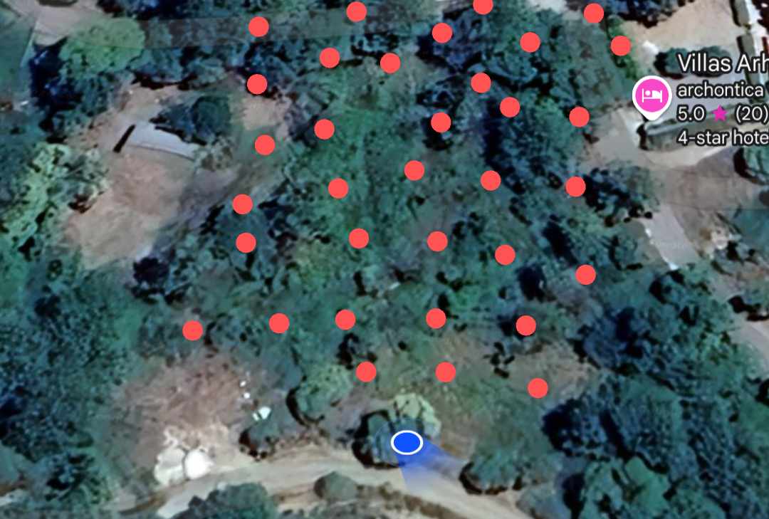 Τα αγροτεμάχια που παραχωρήθηκαν, για τις ανάγκες του ερευνητικού Έργου, προετοιμάστηκαν κατάλληλα και φυτεύτηκαν σε 6 m* 6m σύστημα φύτευσης αφού είχαν δεχτεί κατάλληλα φυτοπροστατευτικά για προστασία της φυτοϋγείας τους.